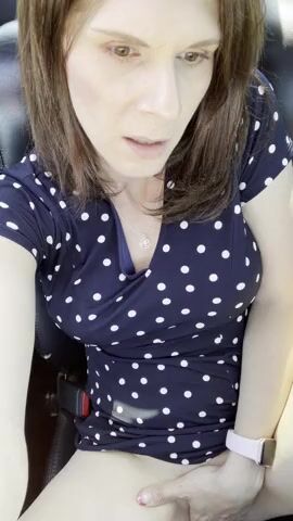 Женщина мастурбирует манду и снимает это в тачке на парковке