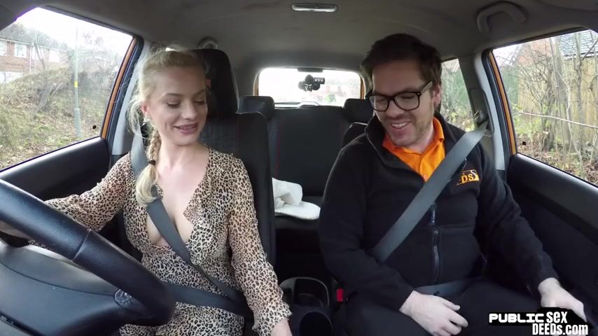 Замужняя белокурая милф с косой была не прочь заняться сексом с инструктором по вождению за зачет. Заехав с очкариком в тихое местечко, стройная леди разделась и стала трахаться в машине словно дешевая уличная проститутка. Очень скоро блондинка поняла что ее снимают на скрытую камеру, вместо того чтобы устроить скандал неверная телка начала хихикать, потом и вовсе предложила ебарю слить всю сперму прямо в ротик.