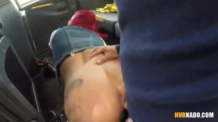 Мужик работая таксистом заехал заправиться, вернувшись в машину увидел на заднем сидении проститутку с огромными дойками. Красноволосая чика сказала куда держит путь и что расплатиться натурой. Таксист был не против и сразу свернул в безлюдное место. Шлюшка с тату сразу приступила делать минет холдею, а после чего, он жарко оттрахал сучку в выбритую киску и в завершении ебли, накончал ей в ротик.